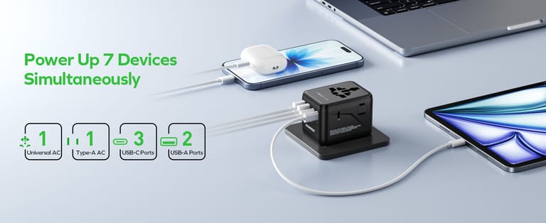 Experience seamless charging worldwide with the Universal Travel Adapter 45W. Compatible with outlets in over 150 countries, this compact gadget offers multiple USB ports and fast charging for all your devices. Built with a sleek, durable design and advanced safety features, it's the essential companion for globetrotters, business travelers, and digital nomads.
